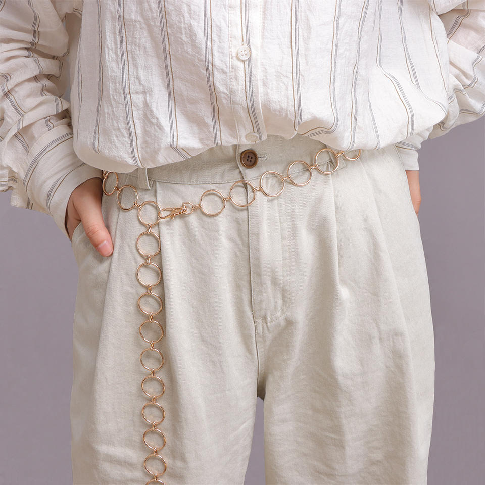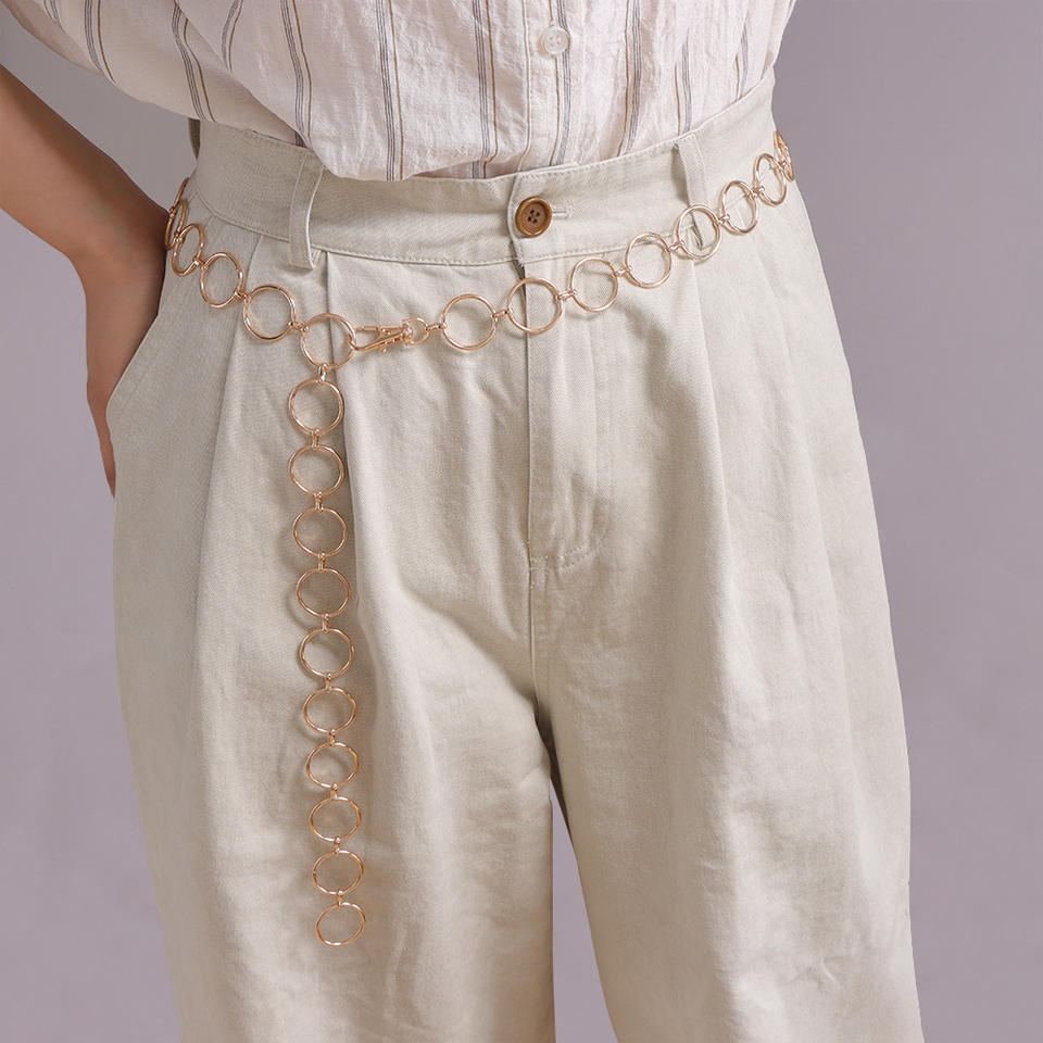 โซ่คาดเอวชั้นเดียว วงแหวนโลหะสีทอง สไตล์พังก์เรขาคณิต สำหรับใส่ทุกวัน ทำจากโลหะผสมสังกะสี