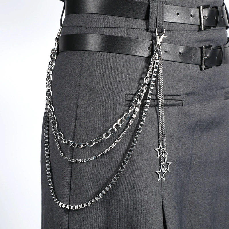 โซ่คาดเอว จี้รูปดาว โลหะผสมสังกะสี โซ่คล้องกางเกงฮิปฮอป เครื่องประดับสำหรับใส่ทุกวัน