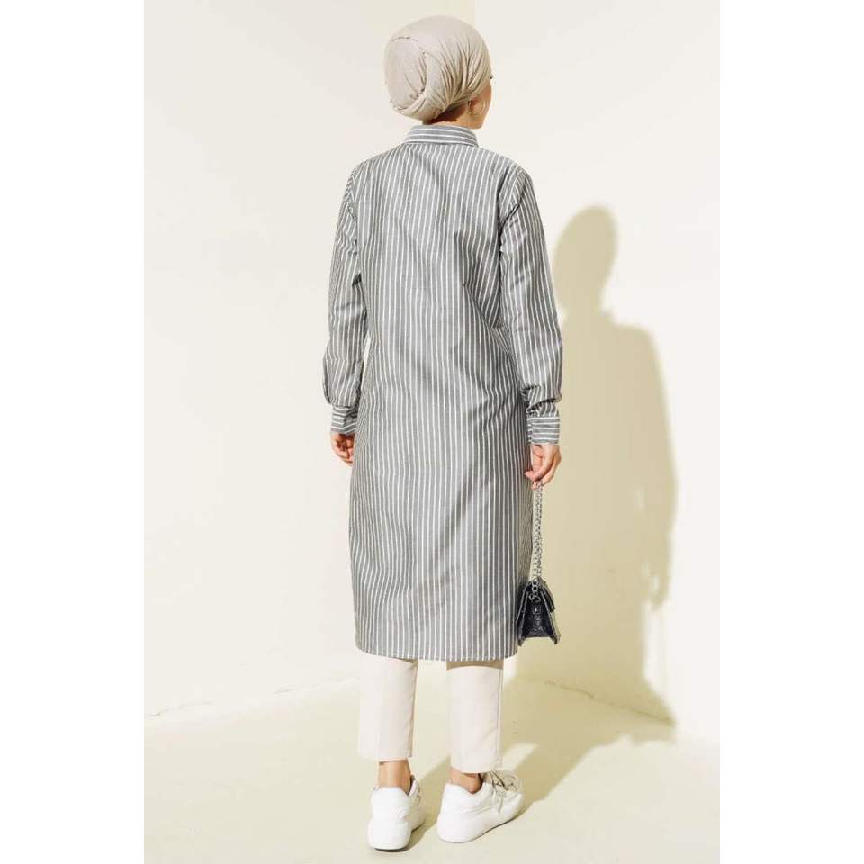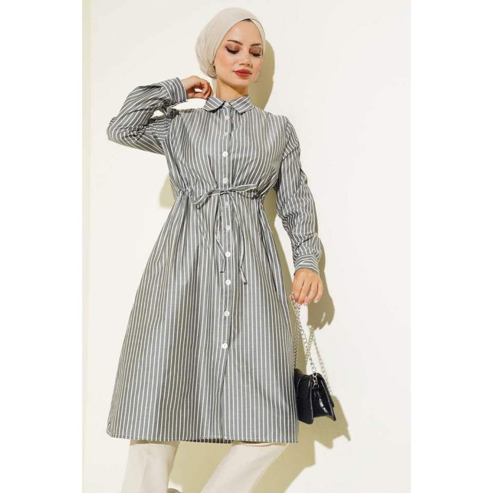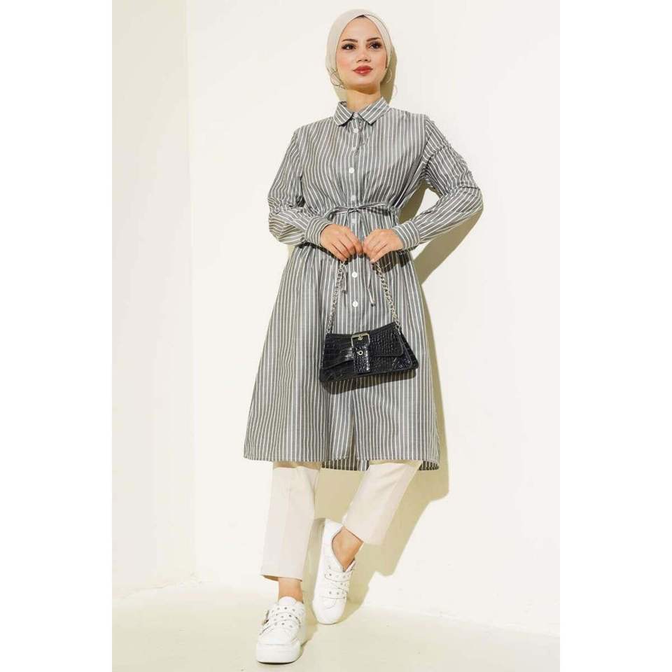 เสื้อเชิ้ตยาวสีดำเอวลายอุโมงค์