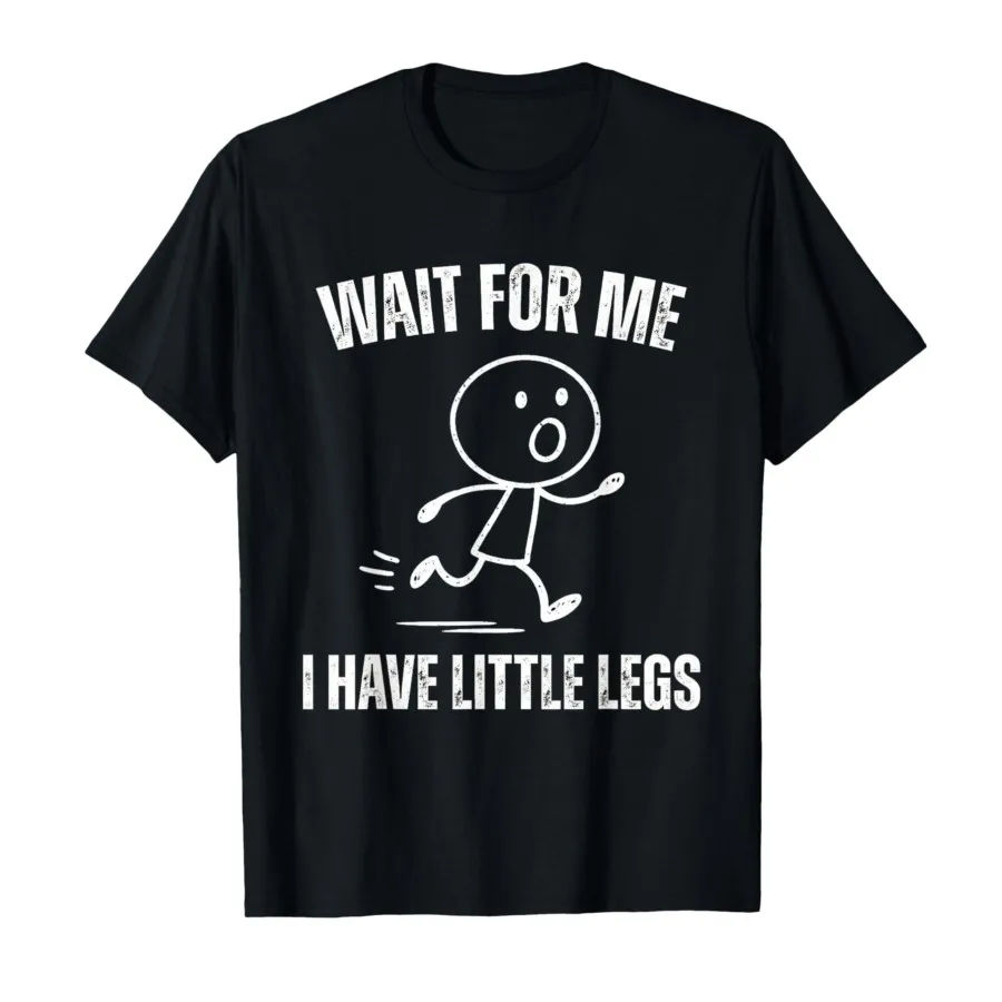 รอฉันสิ ฉันมีขาเล็กๆ เสื้อยืดลายมีมวิ่งตลกๆ สำหรับผู้ชายผู้หญิง เสื้อยืดผ้าฝ้าย 100% เสื้อแขนสั้น