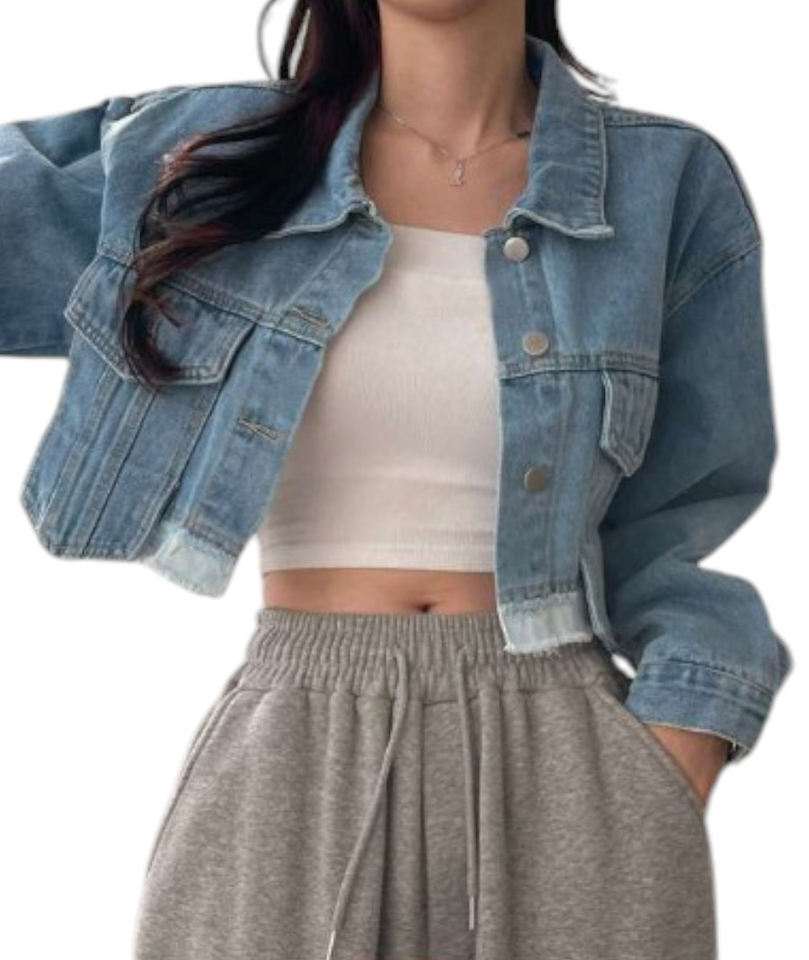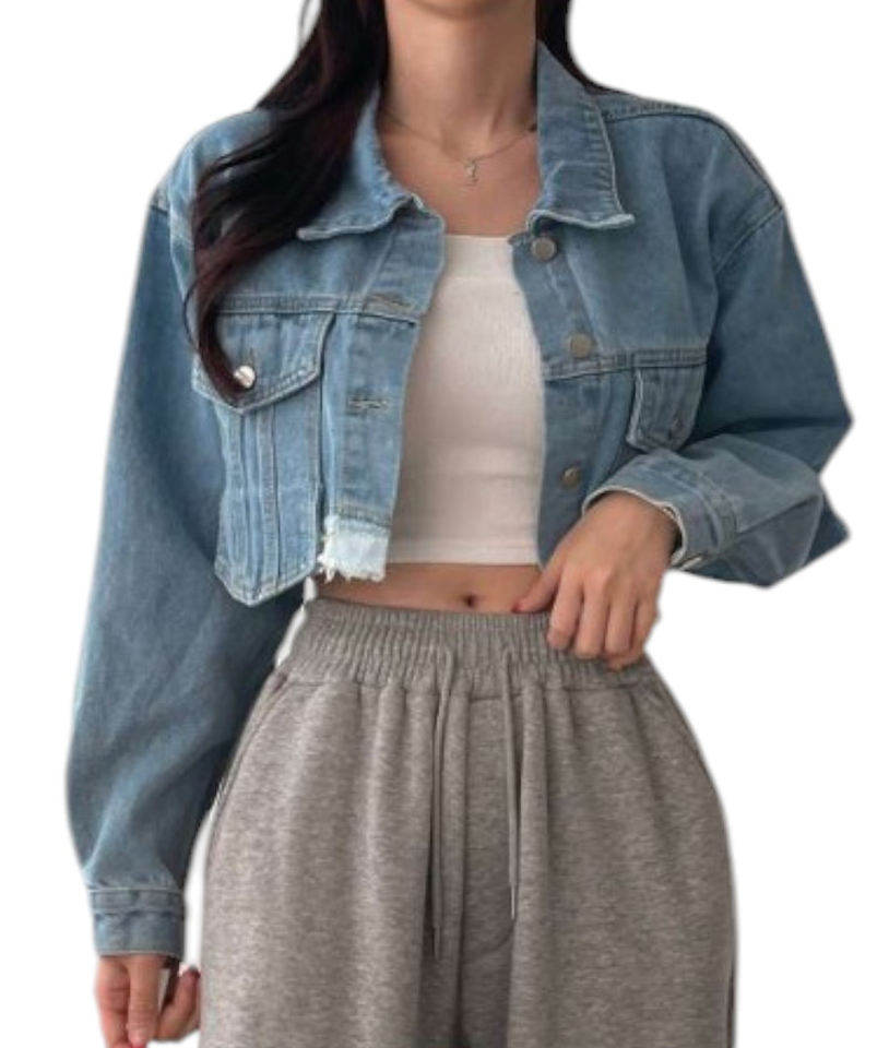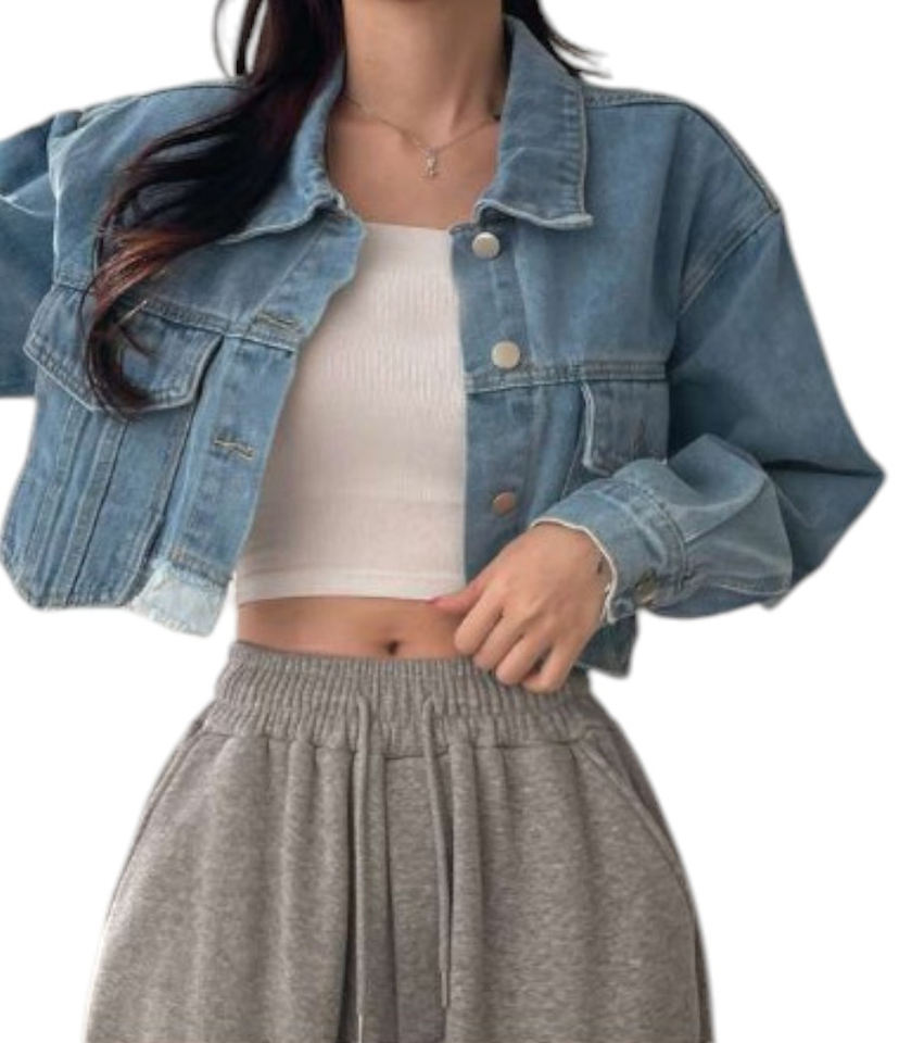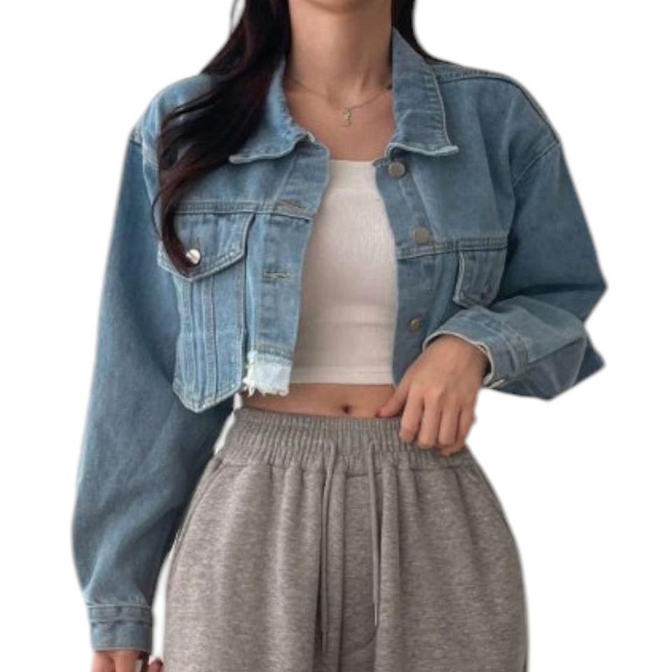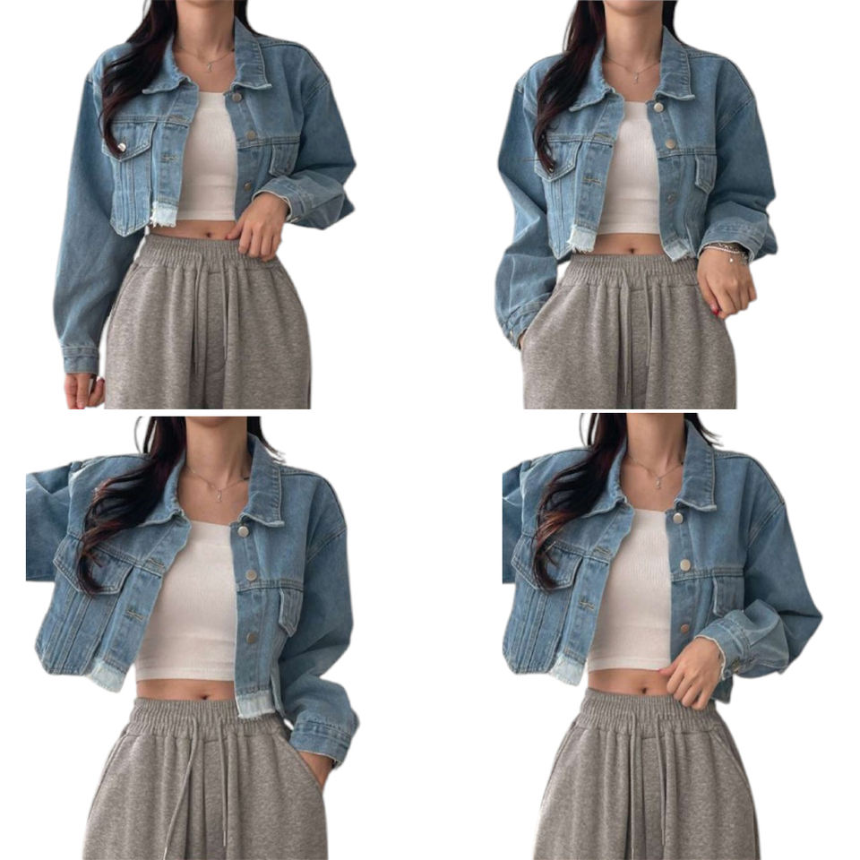 แจ็กเก็ตยีนส์กระดุมแถวเดียวสไตล์เกาหลีทรงหลวมใส่ได้ทั้งชายและหญิงแฟชั่นแนวสตรีท