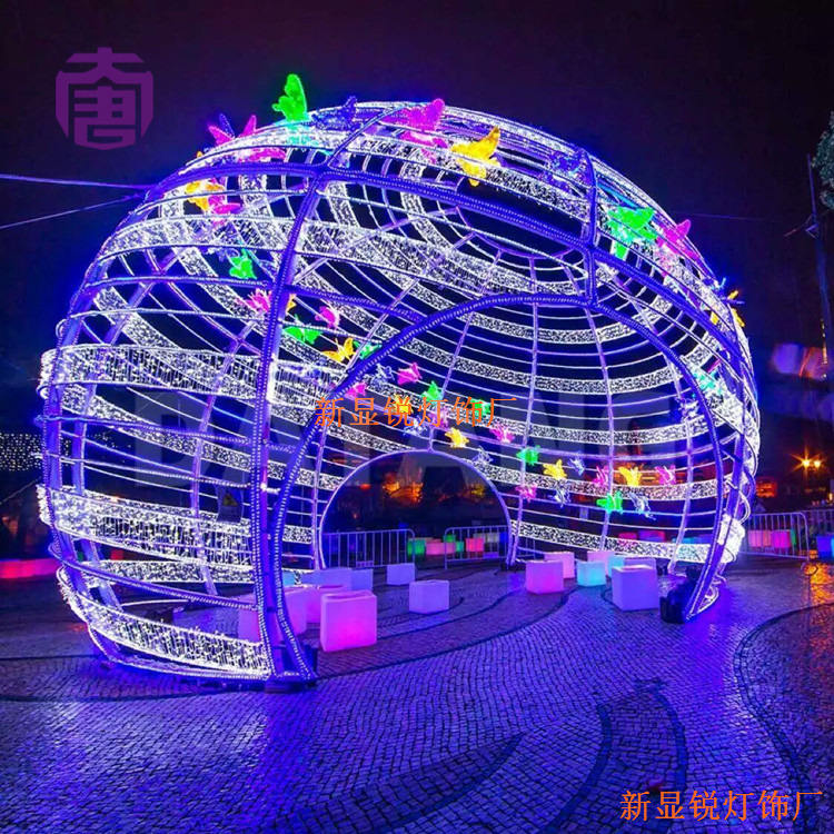 ประติมากรรมซุ้มโค้งรูปทรงลูกบอลคริสต์มาส พร้อมไฟ LED สำหรับตกแต่งเทศกาล กันน้ำระดับ IP65 ใช้ได้ทั้งภายในและภายนอกอาคาร เหมาะสำหรับจุดชมวิว