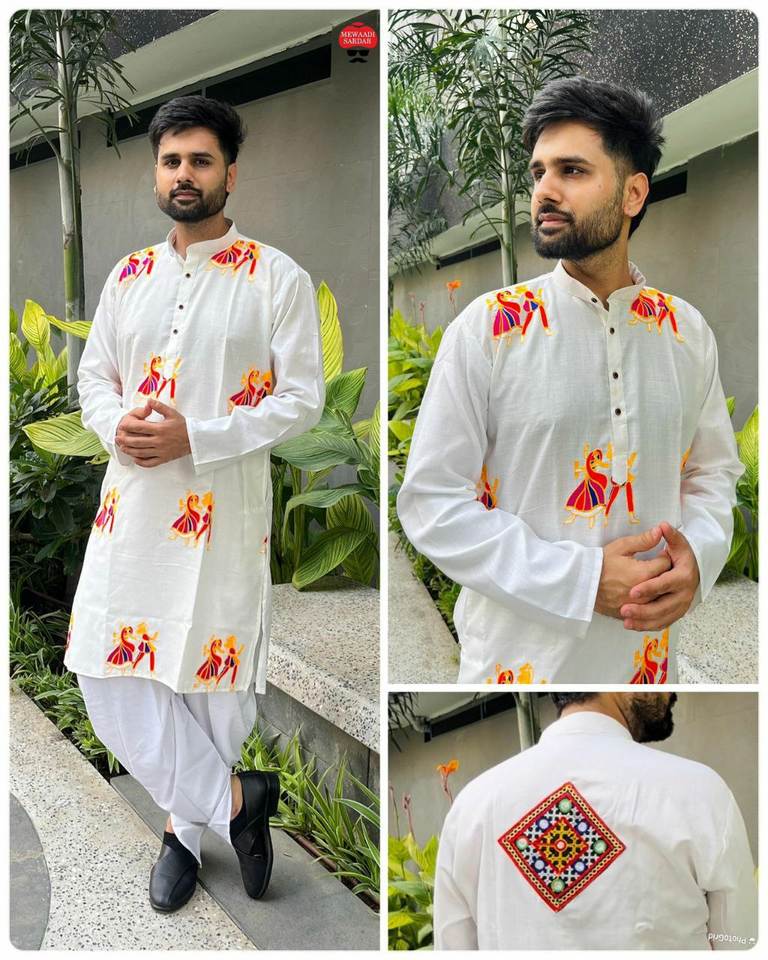 เดินเข้าสู่เทศกาลด้วยความหรูหราที่เงียบสงบสวมใส่ kurta ผู้ชายที่สง่างามนี้ได้รับการออกแบบในรูปแบบการปักผ้าไหม matka ลายวรรณยุกต์