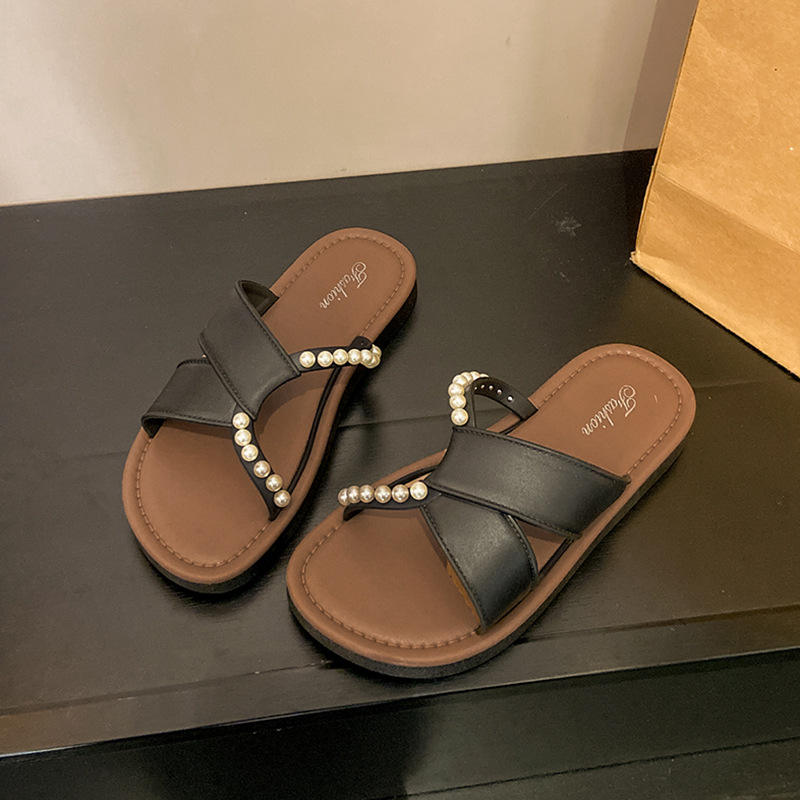 รองเท้าแตะส้นแบนแบบมีสายรัดข้อเท้าสำหรับผู้หญิงฤดูใบไม้ผลิฤดูร้อนรองเท้าเดินชายหาดกลางแจ้ง