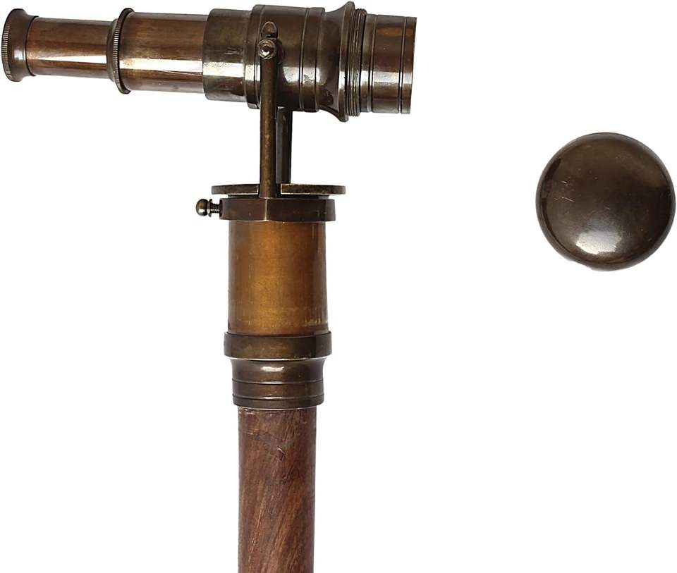 ไม้เท้าเดินทำจากไม้ พร้อมกล้องส่องทางไกลซ่อนในทองเหลือง