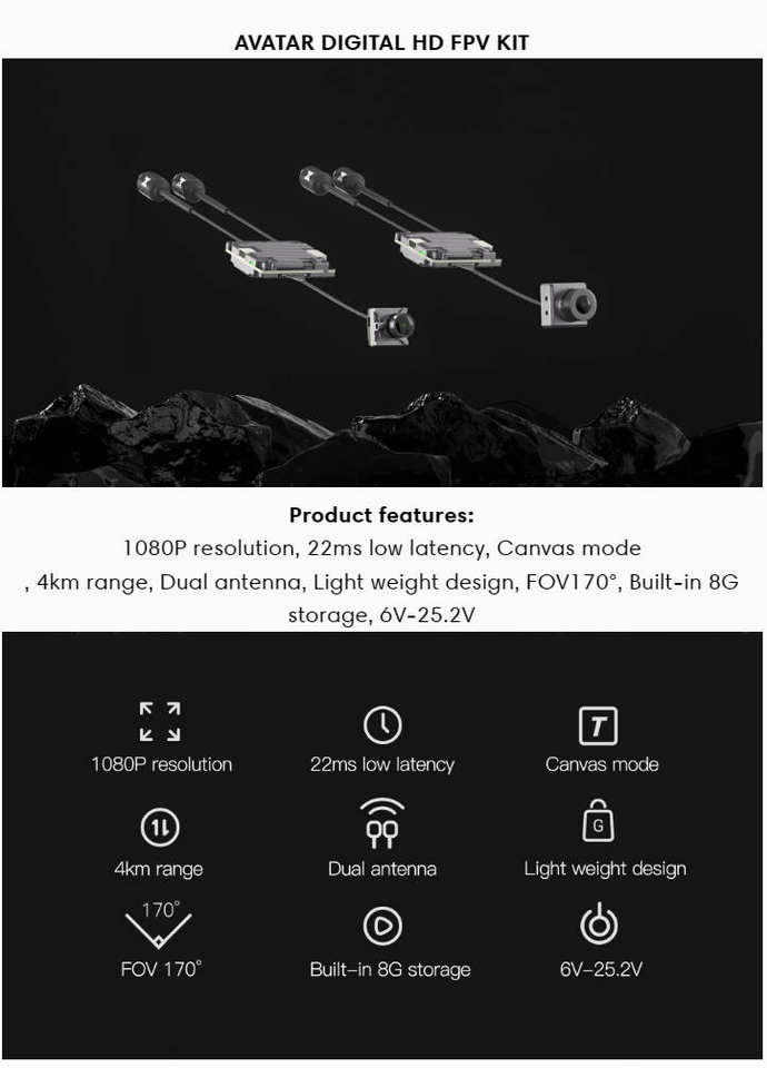 ชุดกล้อง Walksnail HD / VTX 1080P มุมมอง 170 องศา ความหน่วงต่ำ พร้อม DVR ในตัว ระยะ 4 กม. รองรับ FatShark HD Dominator รับประกัน 6 เดือน