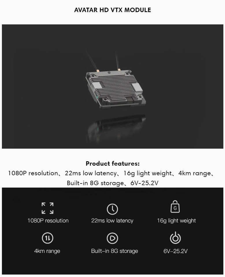 SHARK walkled avatar HD vtx โมดูล22ms Lower 1080P ความหน่วง8GB จัดเก็บข้อมูลภายในระยะ4กม. สำหรับ walknshail fathd Dominator