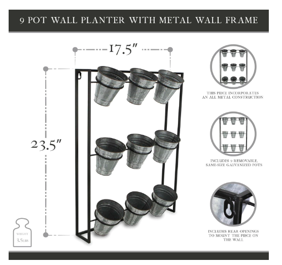 ชุดตกแต่งผนังกระถาง9ใบแบบทันสมัยพร้อมกรอบโลหะแขวนแนวตั้งอุปกรณ์ตกแต่งผนังสำหรับงานวันเกิด