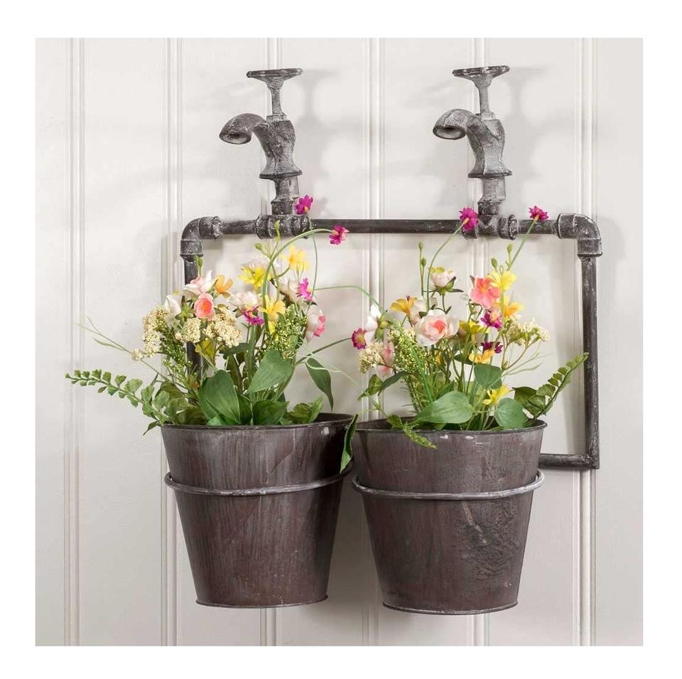 ชุดที่ปลูกต้นไม้โลหะเหล็กสำหรับตกแต่งผนัง2ชิ้นเหมาะสำหรับใช้ในร่มและกลางแจ้งโลหะชุบสังกะสีลดราคาจากอินเดีย