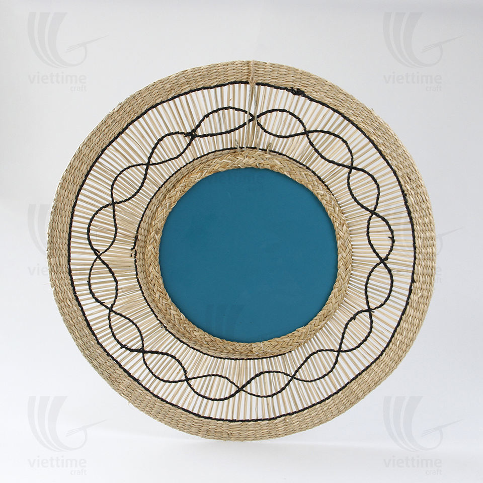 กระจกตกแต่งผนังทรงสี่เหลี่ยมผืนผ้า ทำจากหญ้าทะเล งานแฮนด์เมด ดีไซน์วินเทจแบบชนบท ขนาดสั่งทำได้ ราคาโรงงาน ผลิตในเวียดนาม ODM/OEM KING CRAFT
