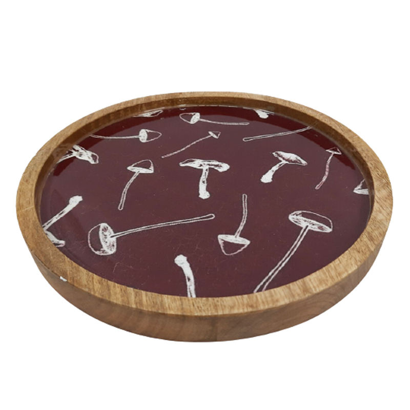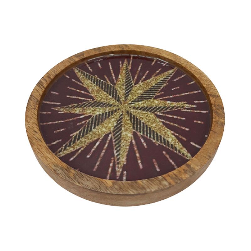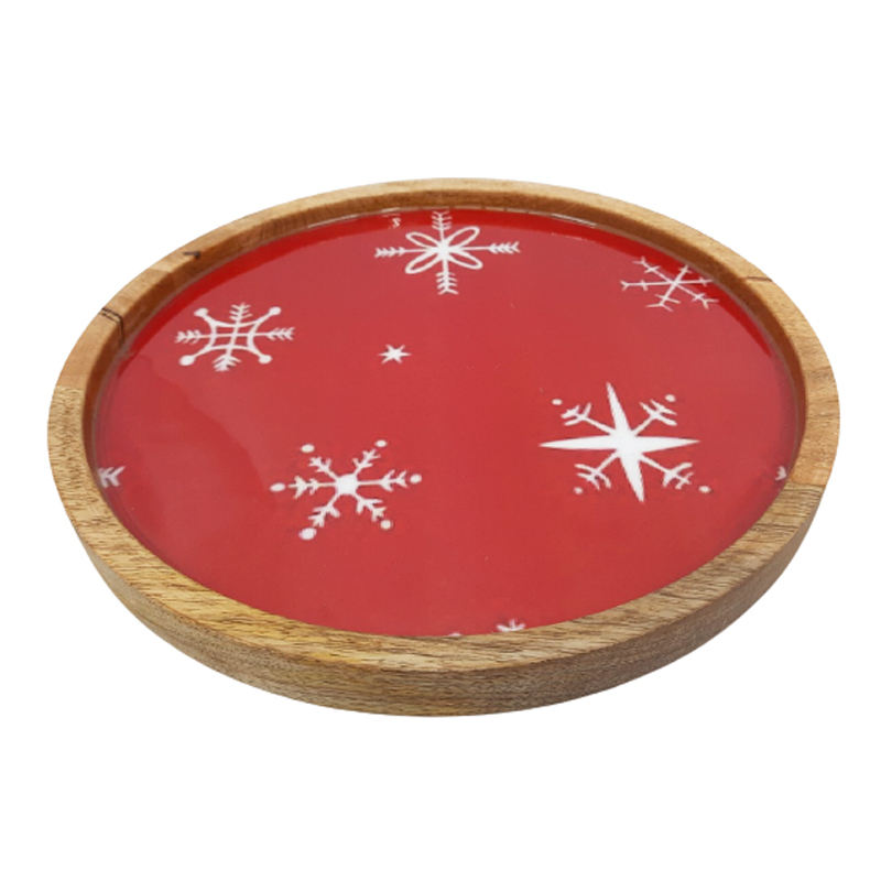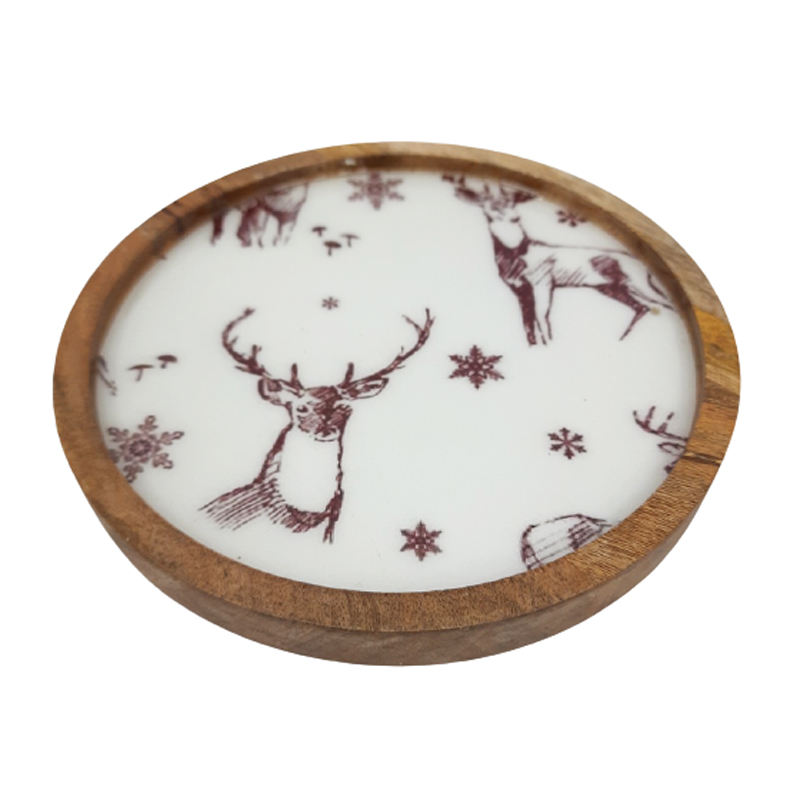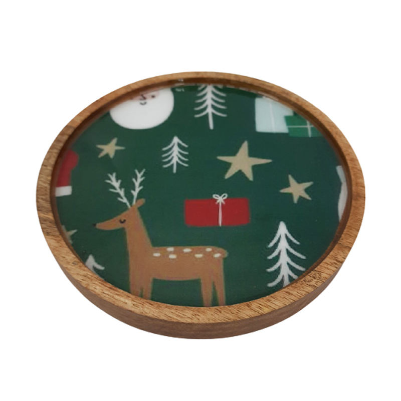 ผนังตกแต่งไม้เคลือบแผ่นกลมสีธรรมชาติขนาดมาตรฐานจานและถาดสําหรับเสิร์ฟในโรงแรมและสําหรับตกแต่งคริสต์มาส