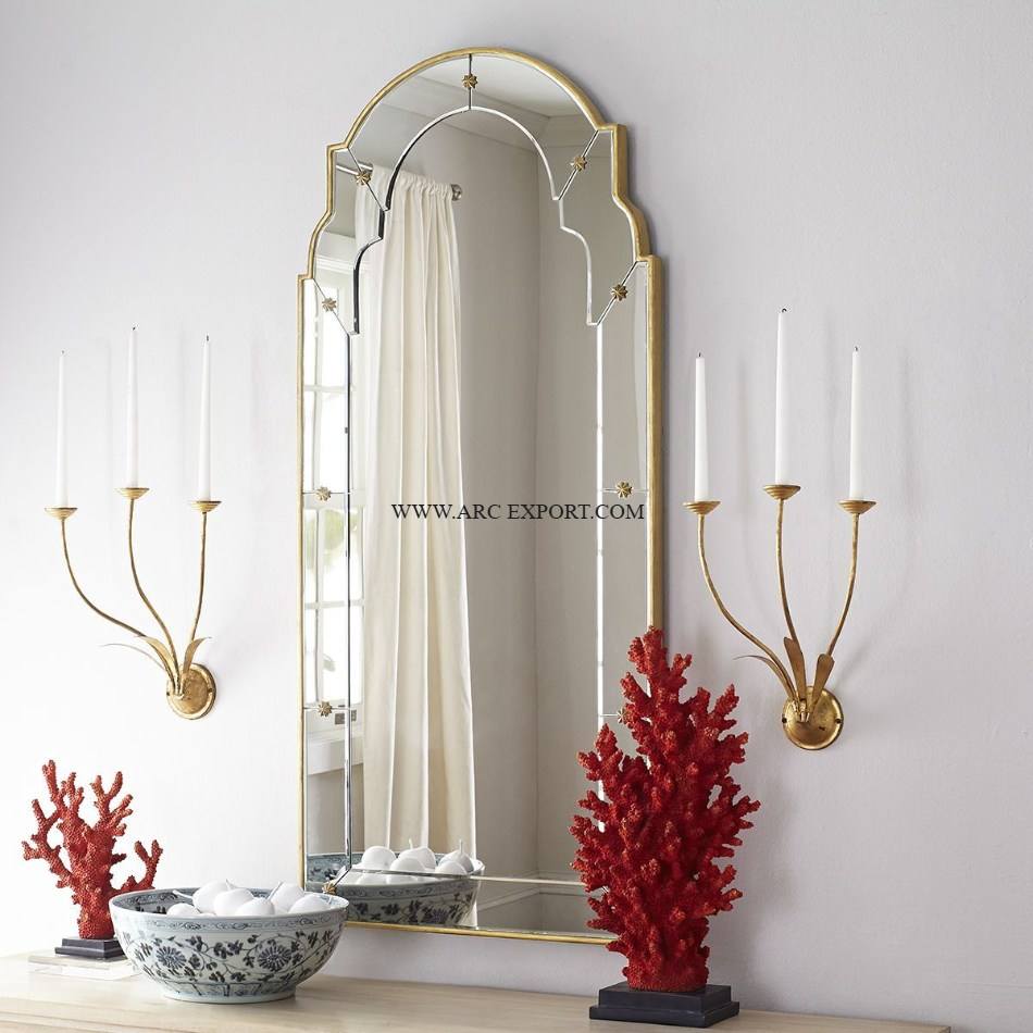 กระจกแขวนผนังกรอบโลหะลายใบไม้สำหรับห้องนั่งเล่นห้องวาดภาพห้องแต่งตัวอุปกรณ์กระจกขัดเงาสำหรับห้องน้ำ