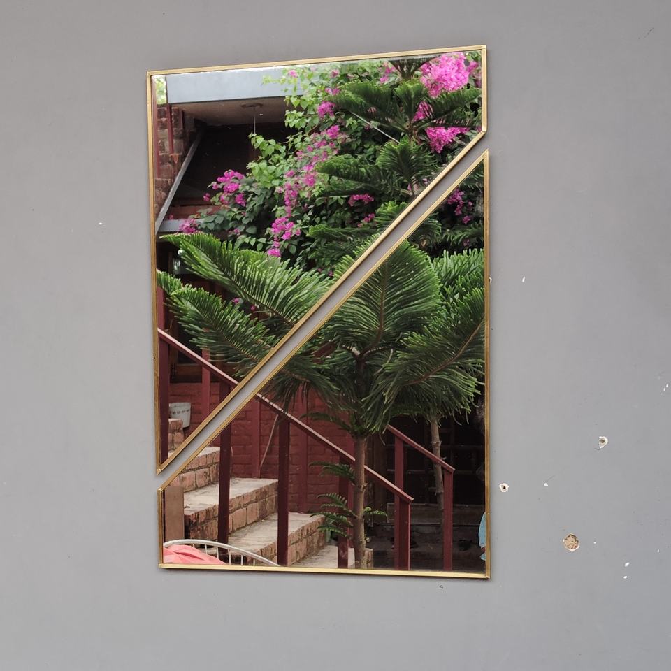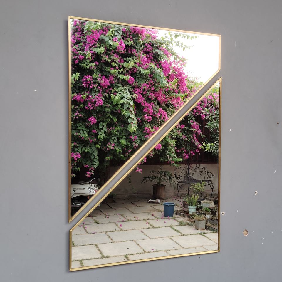 กระจกติดผนังแบบสองชิ้น กระจกตกแต่งผนังแบบไม่เหมือนใคร พร้อมกรอบสีทองเหลือง