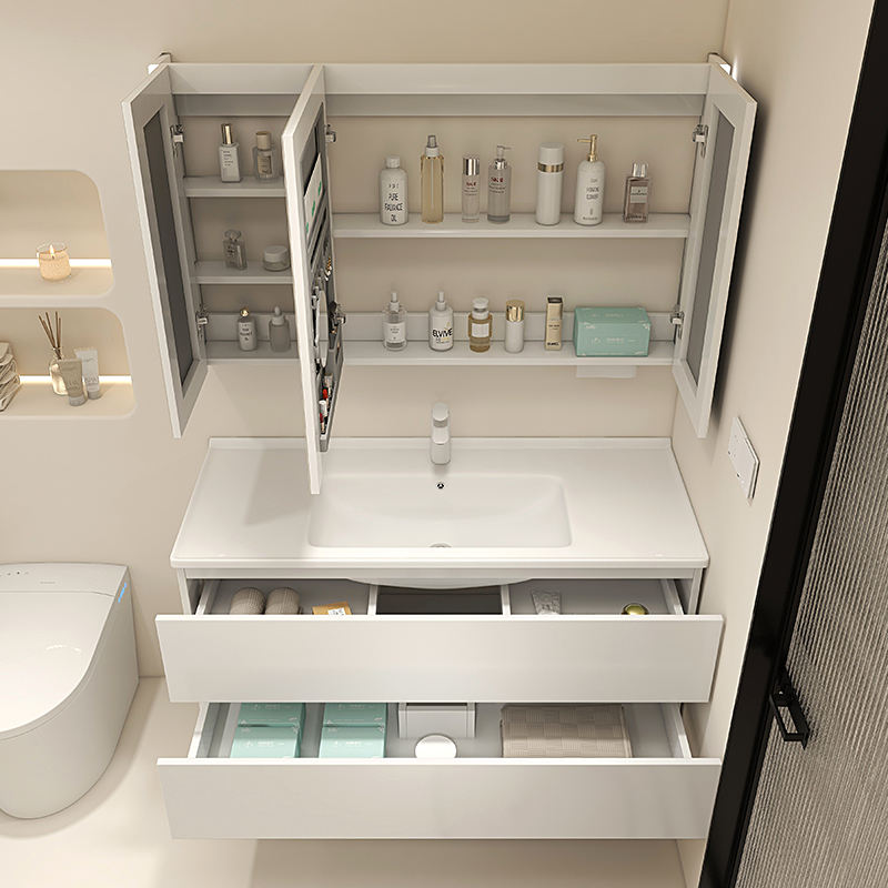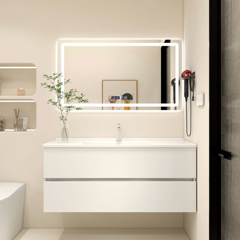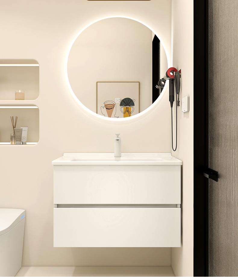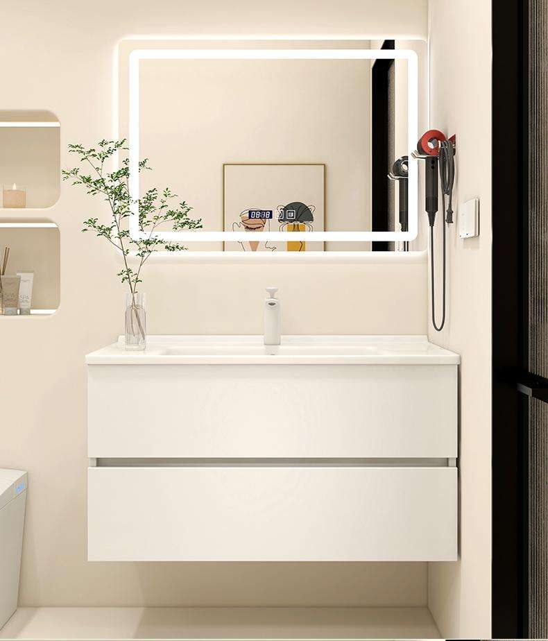 Wall Mount Luxury Modern Bathroom Cabinet LED Mirror Lacquer Large Storage Vanity Sink Waterproof MDF SoftClose Ceramic Basin