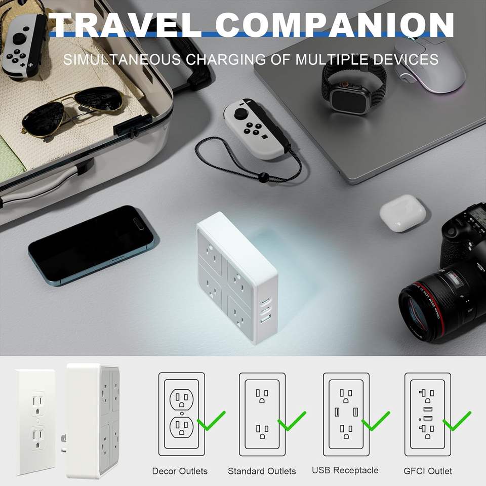 Wall Mount Power Strip with 4 AC 3 USB Surge Protection