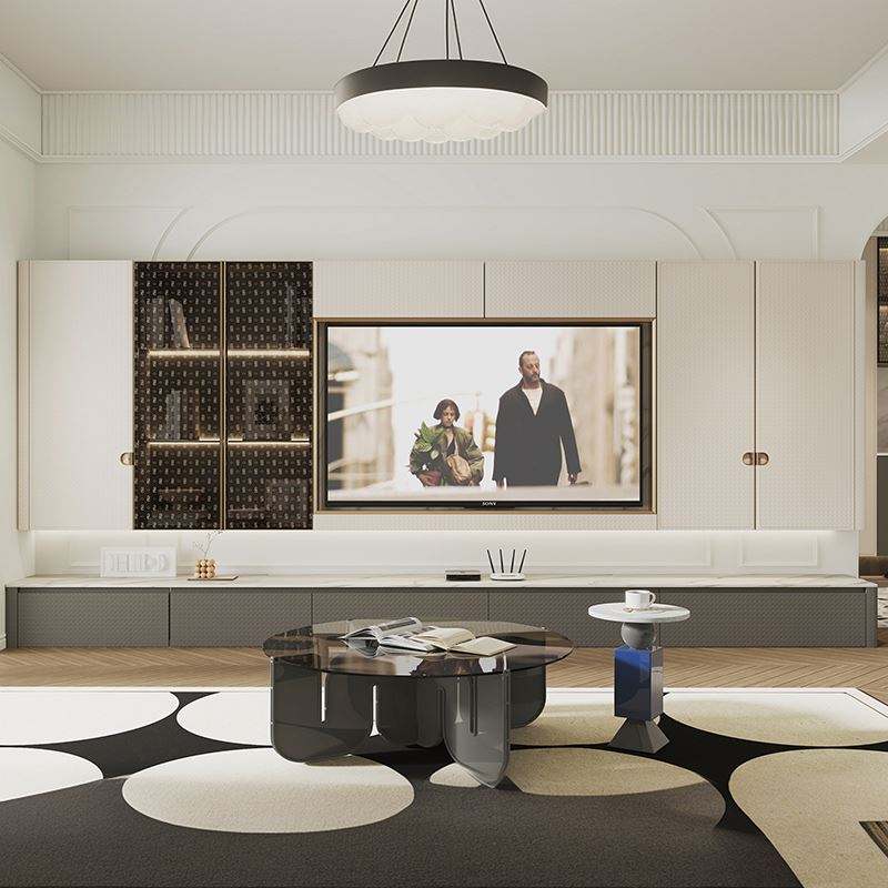 ตู้วางทีวีติดผนัง ดีไซน์ทันสมัย หรูหรา สำหรับห้องนั่งเล่น พร้อมดีไซน์แบบลอยตัว จัดเก็บอุปกรณ์ได้