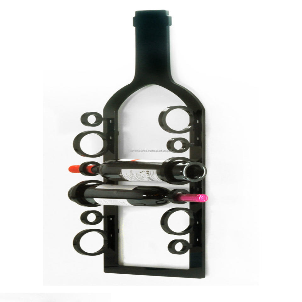 ชั้นวางไวน์โลหะสีดำรูปทรงขวด ดีไซน์ทันสมัย เหมาะสำหรับบาร์ในบ้าน ร้านค้า ร้านอาหาร และงานเลี้ยงสังสรรค์ ขายส่งจากอินเดีย