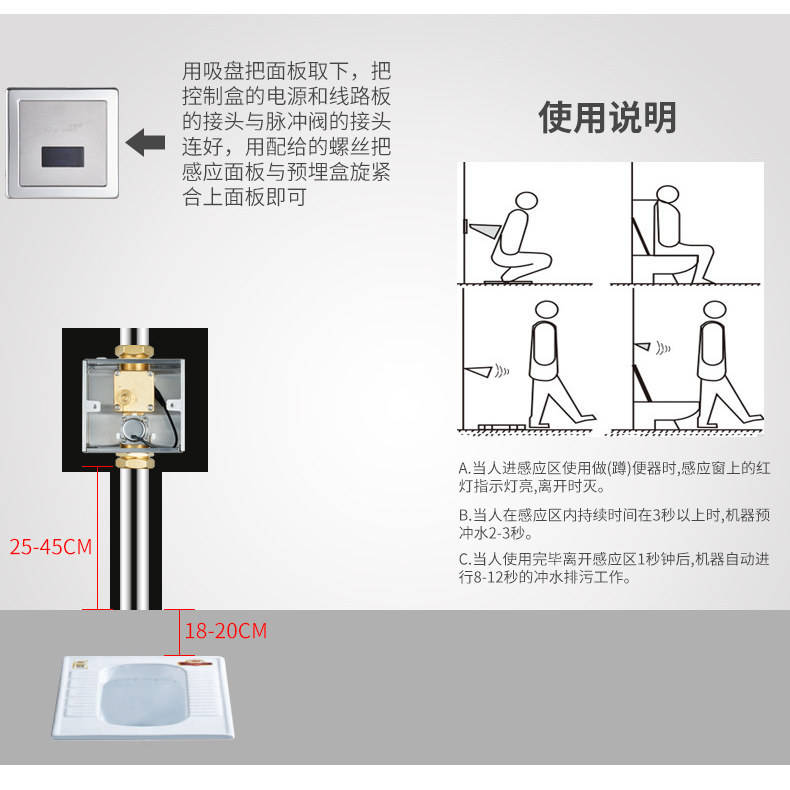 โถสุขภัณฑ์แบบติดผนังพร้อมเซ็นเซอร์อัตโนมัติ ระบบกดปุ่มซ่อนแบบอัตโนมัติเต็มรูปแบบ วาล์วกดแบบใหม่
