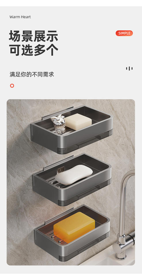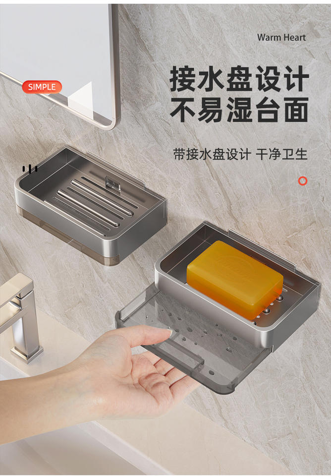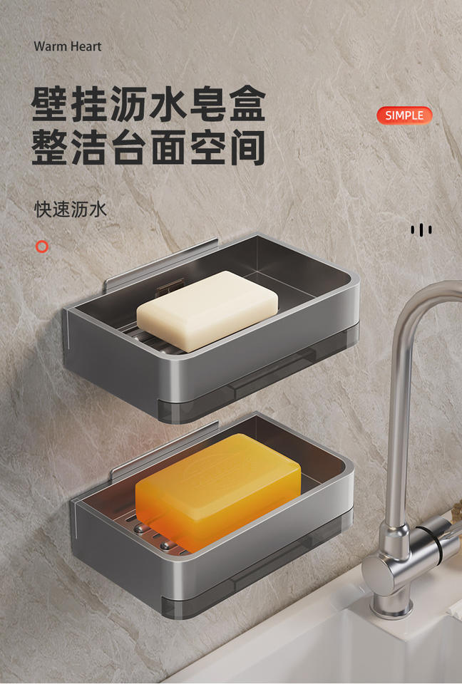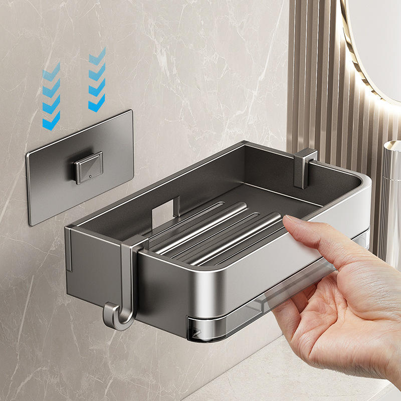 กล่องสบู่อลูมิเนียมระบายน้ำสองชั้นแบบติดผนังชั้นเก็บของในห้องน้ำสำหรับใช้ในคลังสินค้ากลางแจ้งในโรงแรมหรือในโรงพยาบาล