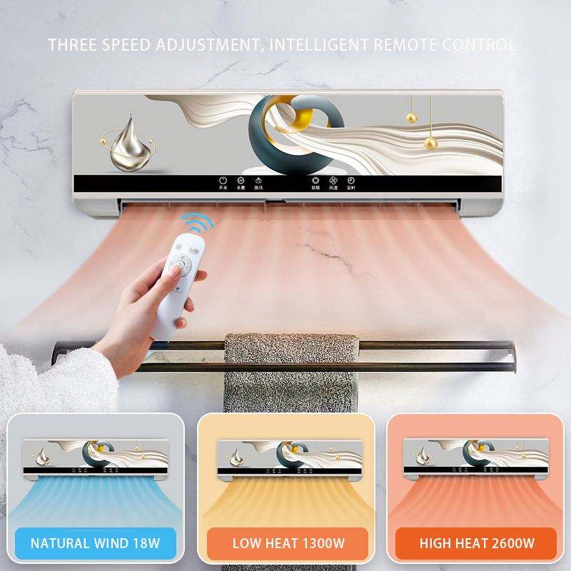 เครื่องทำความร้อนติดผนังไฟฟ้า คาร์บอนไฟเบอร์ สำหรับห้องน้ำ พร้อมรีโมทคอนโทรล ให้ความร้อนเร็ว พัดลมฮีตเตอร์ วัสดุพลาสติก เครื่องเป่าลมร้อน