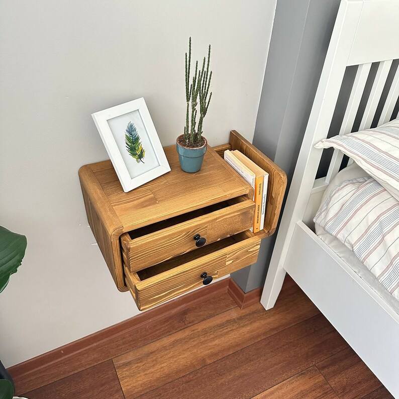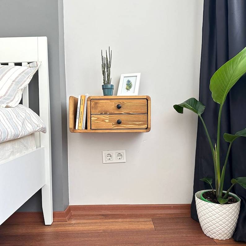 ลิ้นชักลอยติดผนังโต๊ะข้างเตียงทำจากไม้ทันสมัยเฟอร์นิเจอร์ห้องนอนทำด้วยมือชั้นวางของในอวกาศ