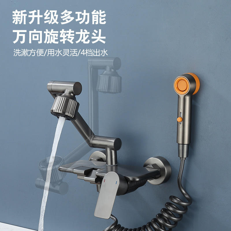 ก๊อกน้ำร้อนน้ำเย็นติดผนังแบบก้านเดียว หมุนได้ 360 องศา แกนวาล์วเซรามิก ใช้ในครัว ซักรีด ระเบียง