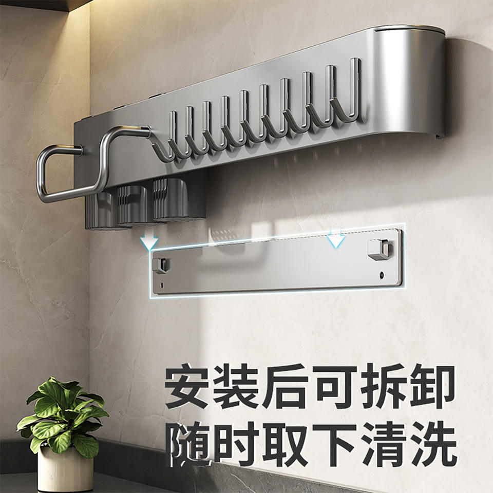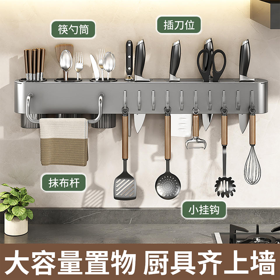 ชั้นวางมีดติดผนังพร้อมที่วางตะเกียบ อุปกรณ์จัดเก็บแบบแขวนอเนกประสงค์ รูปทรงสี่เหลี่ยมผืนผ้าสำหรับวางตะแกรงระบายน้ำ