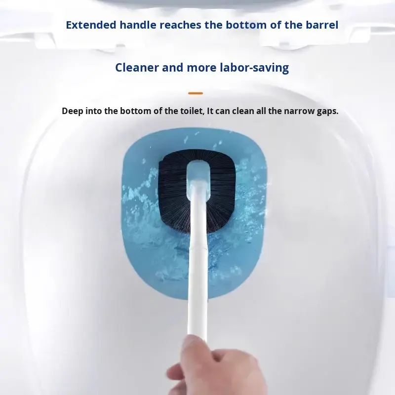 แปรงขัดห้องน้ำแบบติดผนัง ด้ามยาว หัวแปรงโค้ง ขนแปรงเป็นมิตรกับสิ่งแวดล้อม ผลิตจากพลาสติก ใช้ทำความสะอาดห้องน้ำ พร้อมที่วางแปรงสำหรับโถสุขภัณฑ์