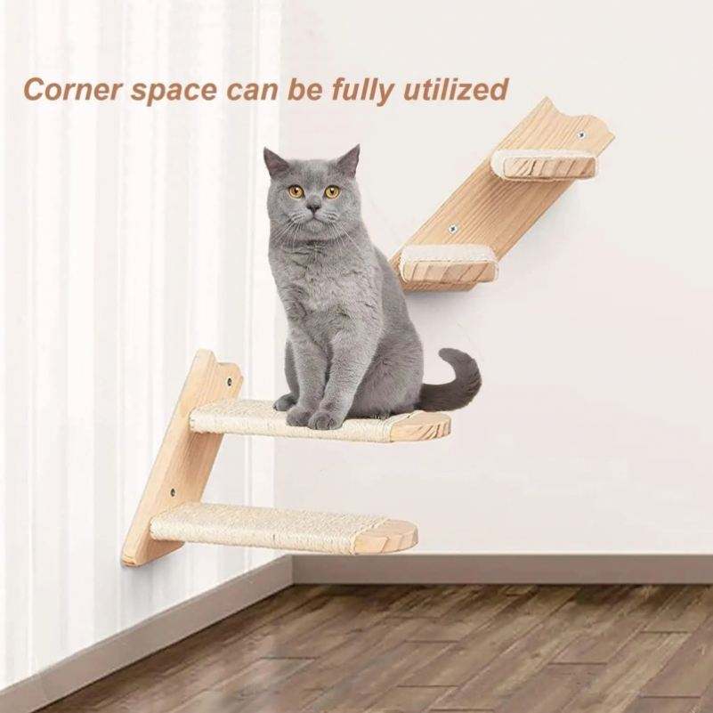 แท่นวางต้นไม้แมวปรับขนาดได้แท่นปีนเขาแบบแขวนติดผนังทำจากไม้เนื้อแข็งเป็นมิตรต่อสิ่งแวดล้อม