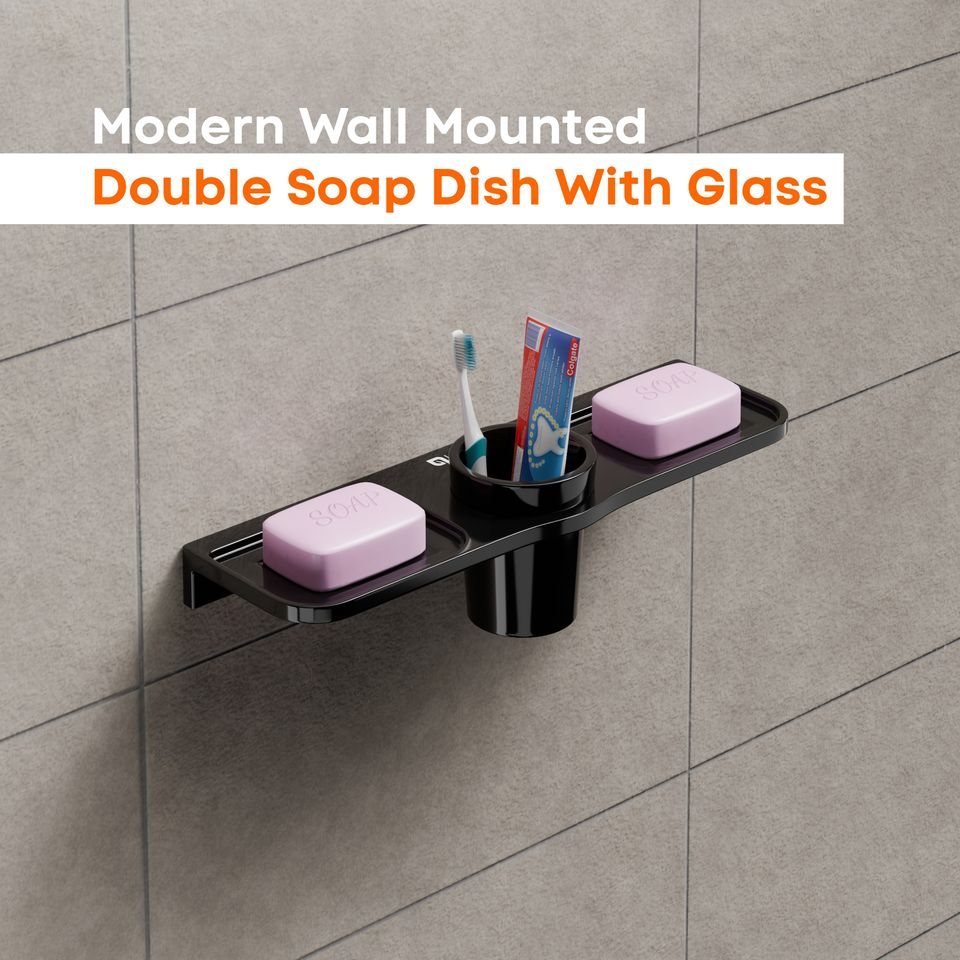 ที่วางสบู่แก้วทรงสี่เหลี่ยมขนาดเล็กติดผนังพร้อมที่ยึดสแตนเลส อุปกรณ์ตกแต่งห้องน้ำ ถาดสบู่แก้วใสสวยหรู