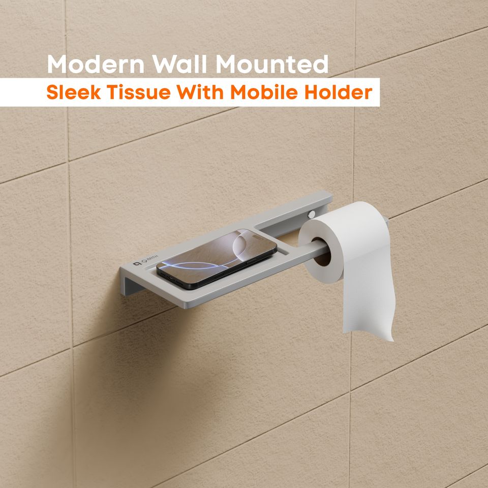 ที่ใส่กระดาษทิชชูแบบติดผนังและชั้นวางอุปกรณ์เคลื่อนที่ ดีไซน์ร่วมสมัยสำหรับพื้นที่ทำงานสมัยใหม่และห้องน้ำหรูหราสำหรับธุรกิจบริการ