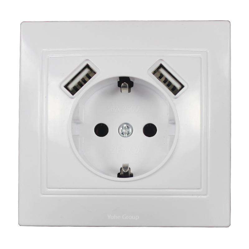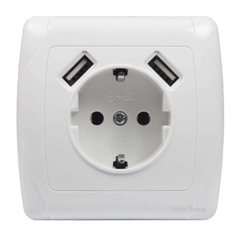 เต้ารับ USB แบบติดผนัง พร้อมพอร์ต USB คู่ 5V 2A ชาร์จเร็ว แผงสัมผัส วัสดุ ABS 10A สำหรับติดตั้งบนผนัง