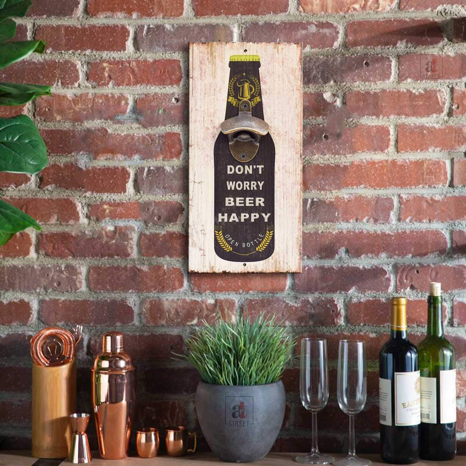 ที่เปิดขวดเบียร์ไม้ติดผนังสำหรับบาร์บ้านที่เปิดขวดสไตล์ย้อนยุคไม้ที่เปิดกระป๋องสร้างสรรค์บาร์โดย ayaans