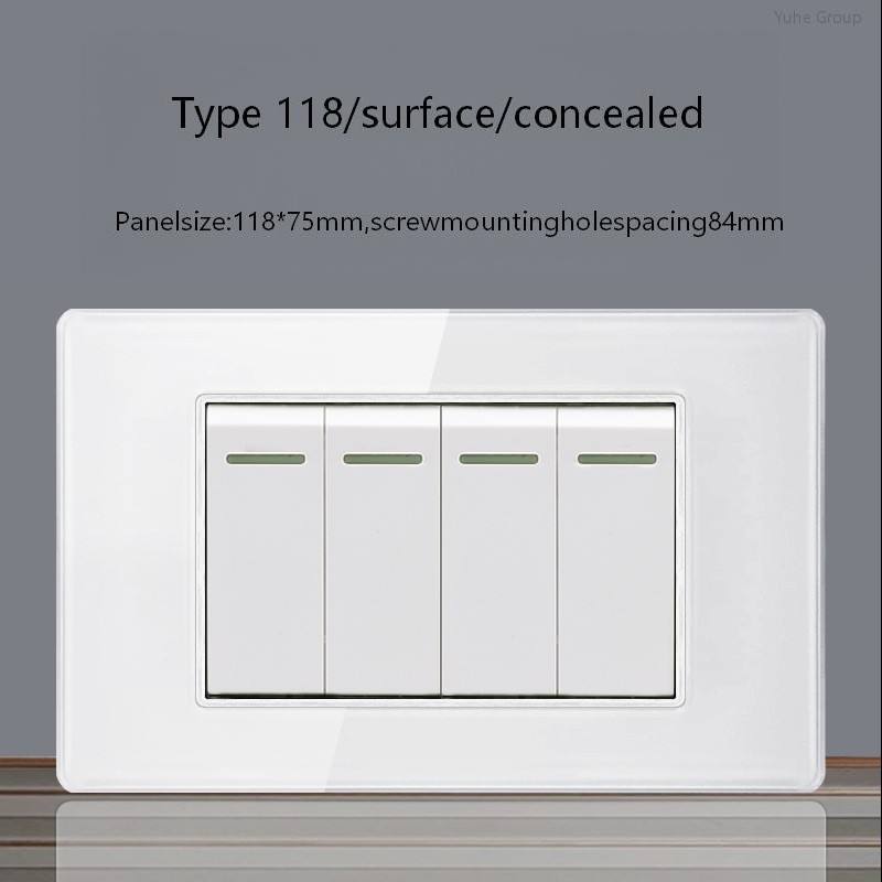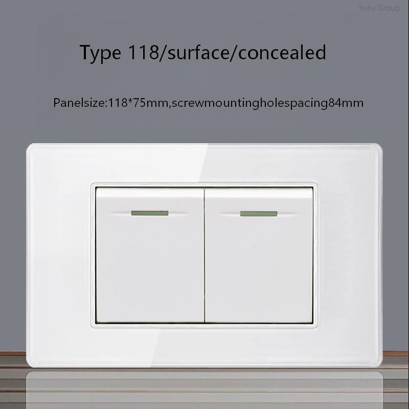 สวิตช์ติดผนัง แผงสีขาว EU U.S. BR แผงสัมผัสเพื่อความปลอดภัย กระจกทนทาน 1/2 ช่อง