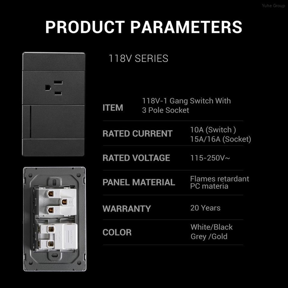สวิตช์และเต้ารับติดผนังแบบสัมผัส ดีไซน์มินิมอลสไตล์อเมริกาใต้ 16A 250V วัสดุ PC