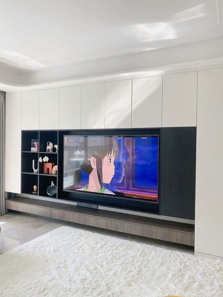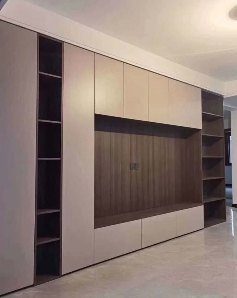 ตู้วางทีวีติดผนัง ดีไซน์แบบครบวงจร ตู้เฟอร์นิเจอร์ทีวีแบบติดผนังเต็มผนัง สำหรับห้องนั่งเล่น