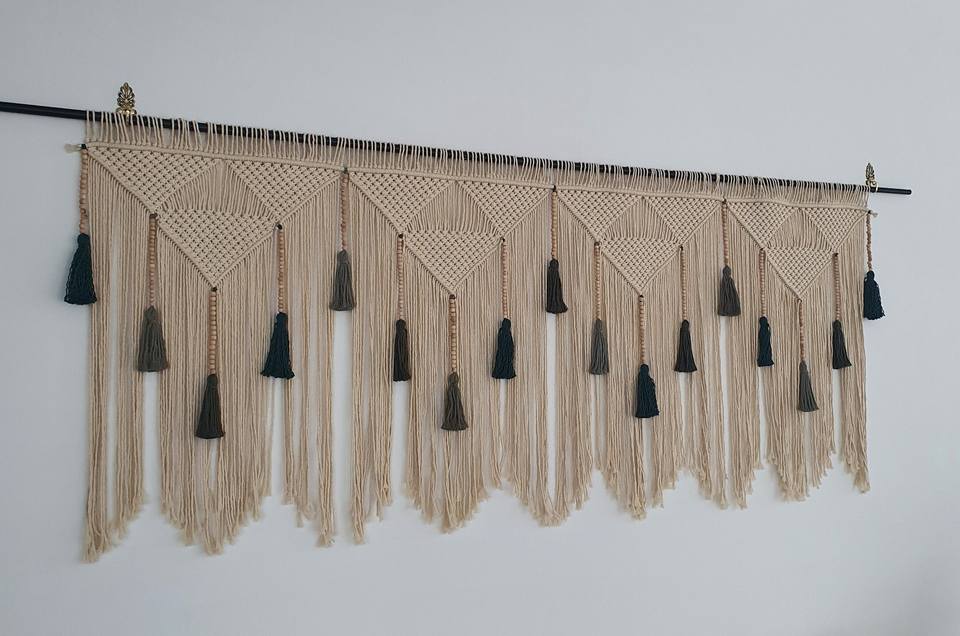 ตกแต่งผนังพู่สีเขียวแบบแขวน, ศิลปะเหนือเตียง, ตกแต่งผนังสิ่งทอ, หัวเตียงคิงไซส์