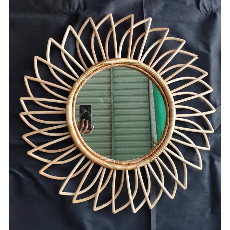 กระจกติดผนังกระจกแบบโบราณทำด้วยมือกระจกสำหรับห้องนั่งเล่นหวายหวายวิลโลว์