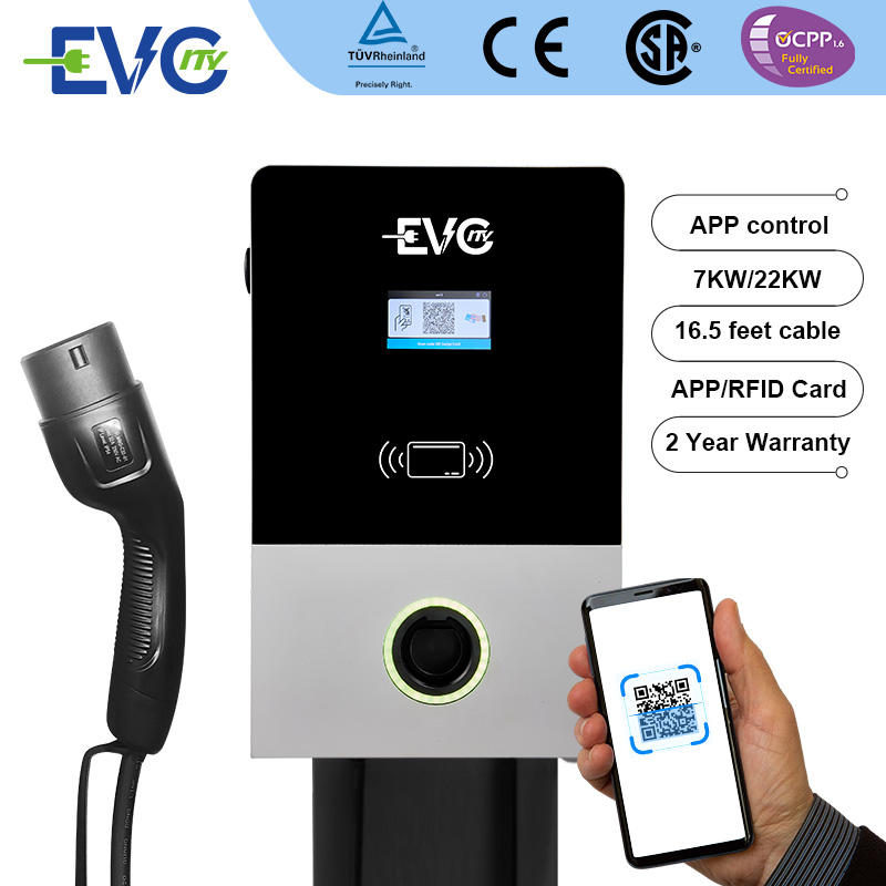 Wall-mounted Charging Stations Level 2 32A RFID Card Wall Home EV Charger 22KW 44KW Wallbox