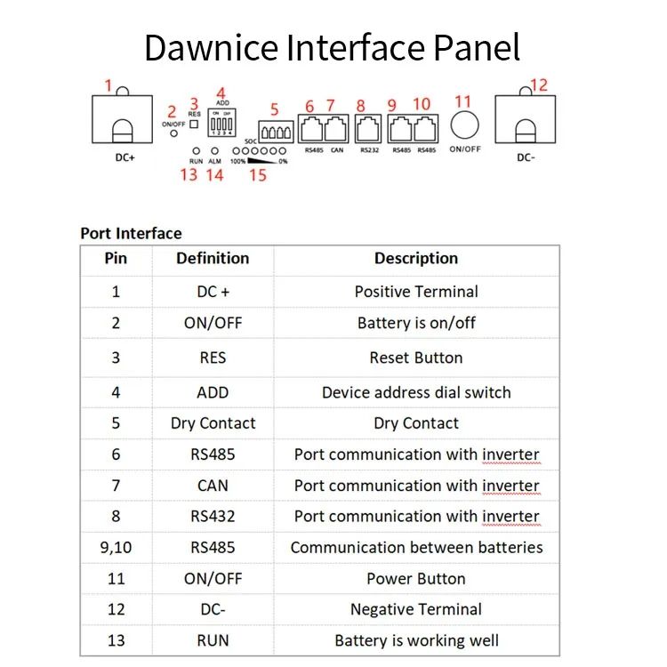 Communication:RS232-PC,RS485(B)-BAT RS485(A)