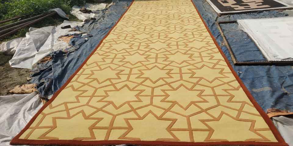 พรมปูพื้นทำมือสไตล์โมเดิร์น ขนสัตว์ผสมฝ้าย ลายแบบนามธรรม เป็นมิตรกับสิ่งแวดล้อม เป็นมิตรกับสัตว์เลี้ยง สั่งทำได้ หรูหรา สำหรับตกแต่งบ้าน ละหมาด และมัสยิด