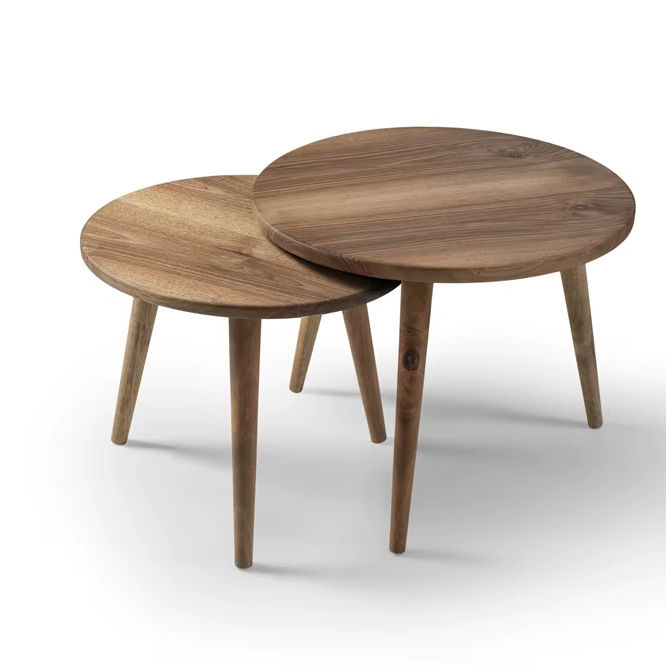 ชุดโต๊ะกาแฟวอลนัท สไตล์มิดเซ็นจูรี่โมเดิร์น โต๊ะข้างไม้ทรงกลม ชุดโต๊ะซ้อน โต๊ะมินิมอลสไตล์มิดเซ็นจูรี่