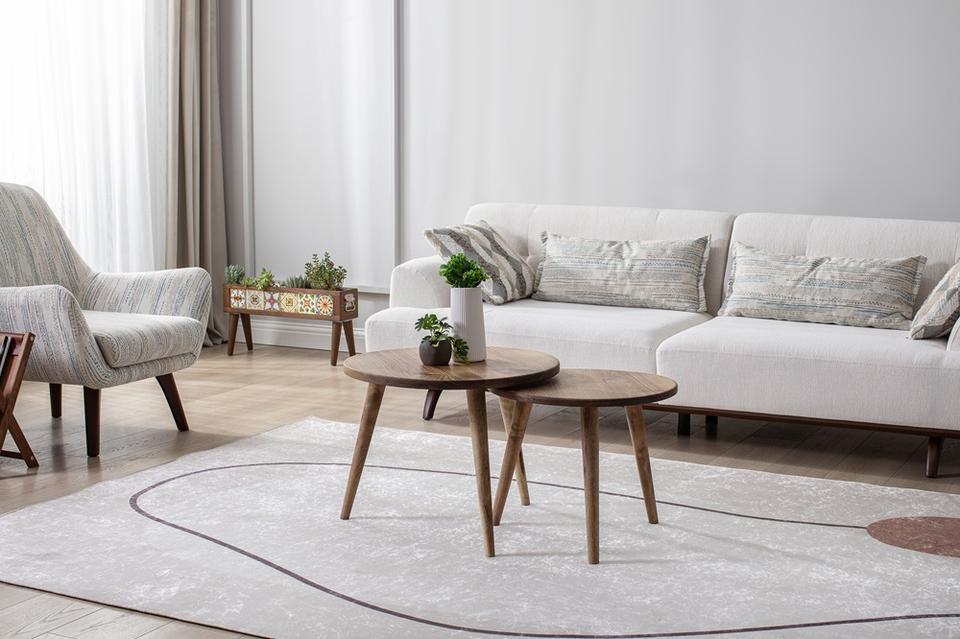 ชุดโต๊ะกาแฟวอลนัท สไตล์มิดเซ็นจูรี่โมเดิร์น โต๊ะข้างไม้ทรงกลม ชุดโต๊ะซ้อน ดีไซน์มินิมอล