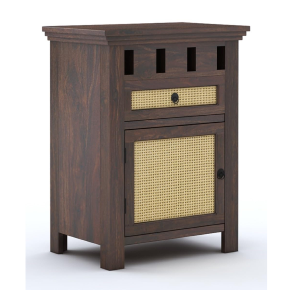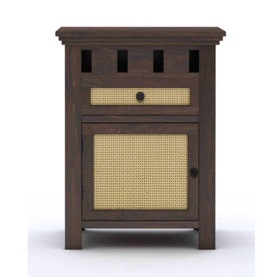 โต๊ะข้างเตียงไม้แกะสลักลายสวยหรู ผิววอลนัท สำหรับห้องนอน พร้อมลิ้นชักเก็บของ 1 ช่อง ทำจากไม้สัก