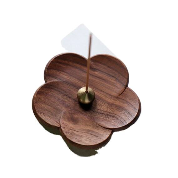 วอลนัทไม้ดอกไม้รูปร่างธูปผู้ถือแผ่นทองแดงธูปผู้ถือ 9 หลุมมะระหยดรูปร่างผู้ถือตกแต่งบ้าน Censors