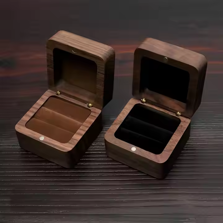 กล่องแหวนเครื่องประดับไม้วอลนัทกล่องใส่ของทรงสี่เหลี่ยมสำหรับจัดงานแต่งงานพร้อมลิ้นชักเก็บอุปกรณ์จัดแสดง