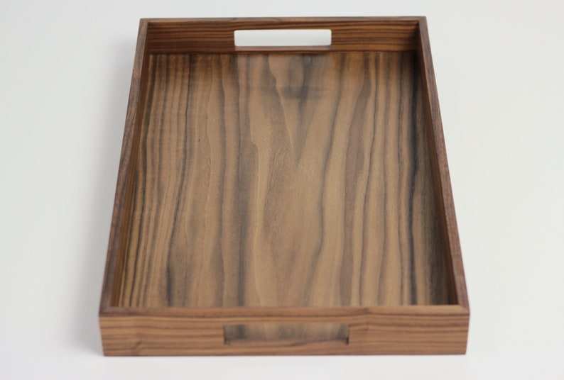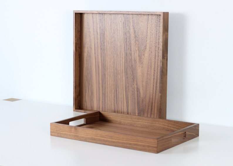 ถาดไม้วอลนัทรักษ์โลกพร้อมหูจับ - ทันสมัย ปรับแต่งสีและขนาดได้ ปลอดภัยสำหรับเครื่องล้างจาน เหมาะสำหรับเป็นของขวัญ ตกแต่งห้องนั่งเล่น