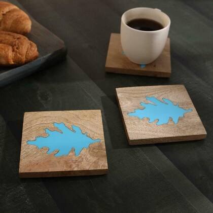 ที่รองแก้วไม้วอลนัทและเรซินแผ่นรองแก้ววอลนัท