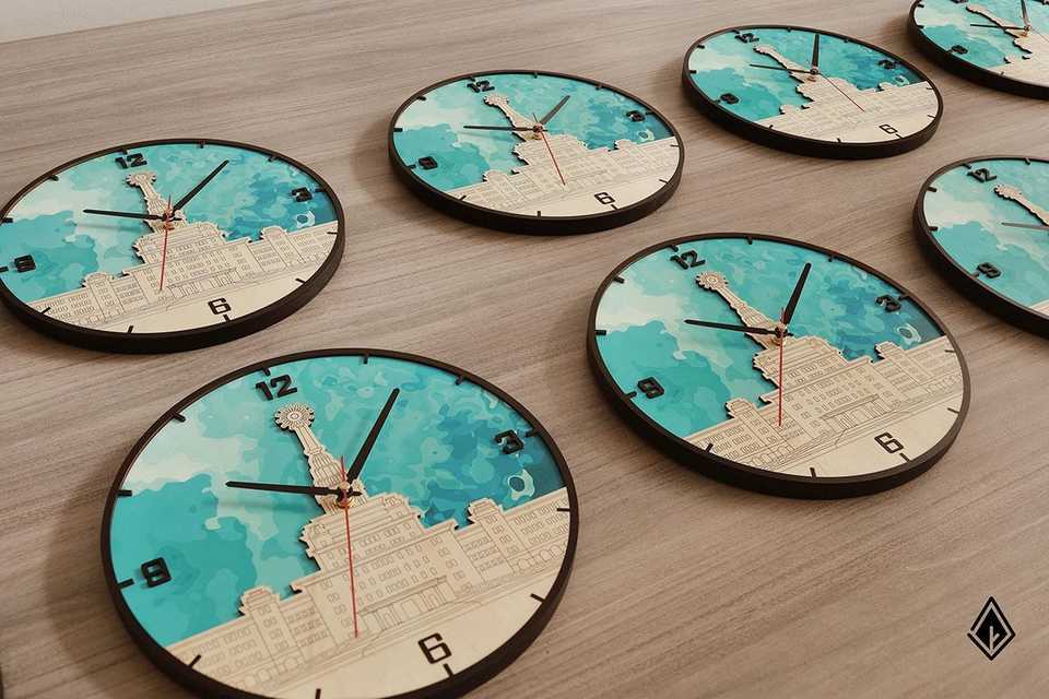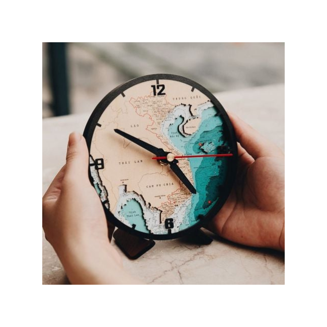 นาฬิกาปลุกไม้วอลนัททำจากไม้โลโก้ตกแต่งผนังหรือโต๊ะสำหรับบ้านดอกบัวสีน้ำเงินสไตล์เรียบง่ายออกแบบได้ตามต้องการ
