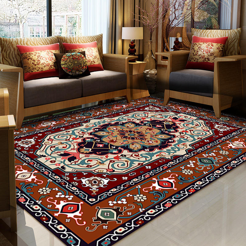 พรมปูพื้นลายเหรียญโบฮีเมียน วาน ซินหลง รูปทรงสี่เหลี่ยมผืนผ้า ผ้ากำมะหยี่คริสตัลกันลื่น เหมาะสำหรับห้องนั่งเล่น โซฟา ห้องนอน
